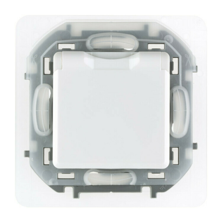 Розетка Legrand INSPIRIA, скрытый монтаж, с заземлением, с крышкой, со шторками, белый, 673740