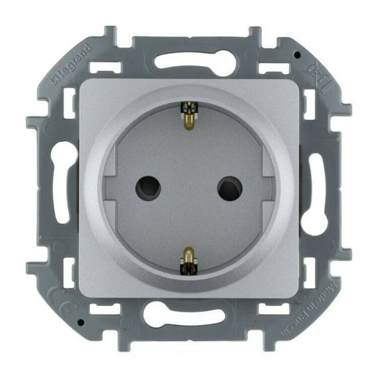 Розетка Legrand INSPIRIA, скрытый монтаж, с заземлением, со шторками, алюминий, 673732