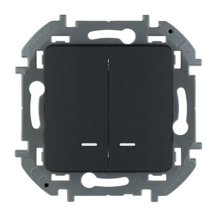 Выключатель 2-клавишный Legrand INSPIRIA с подсветкой, антрацит, 673633